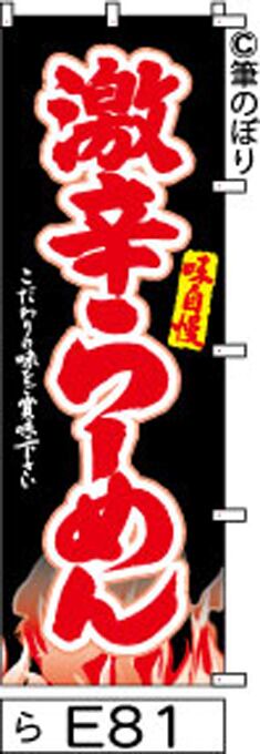【激辛らーめん】のぼり旗|送料無料 目立つ手書き筆文字[e081]黒に赤