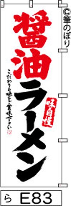 【醤油ラーメン】のぼり旗|送料無料 目立つ手書き筆文字[e083]白地に赤と黒