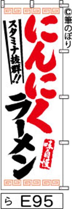 【にんにくラーメン】のぼり旗|送料無料 目立つ手書き筆文字[e095]白地に赤と黒