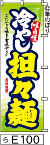 【冷やし担々麺】のぼり旗|送料無料 目立つ手書き筆文字[e100]白地に黄緑和柄白と黄色