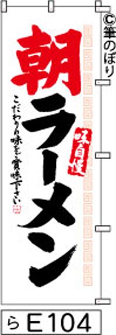 【朝ラーメン】のぼり旗|送料無料 目立つ手書き筆文字[e104]白地に赤と黒
