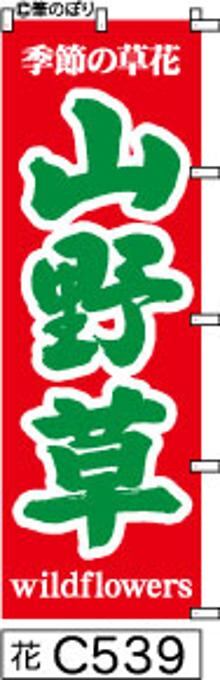 【山野草】のぼり旗|送料無料 目立つ手書き筆文字[c539]赤に緑