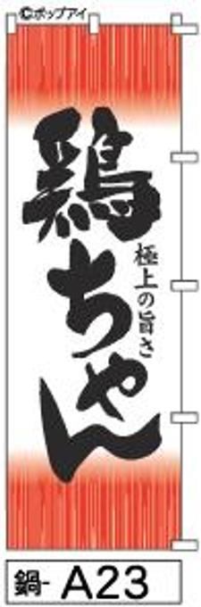 こののぼり【鶏ちゃん】[鍋A023]は、白地に赤の和風模様が施されており、目を引くデザインです!特に離れた位置からでも読みやすく、店舗の視認性を大幅に向上させます。パーティーや宴会、居酒屋の雰囲気を一層盛り上げること間違いなしです!