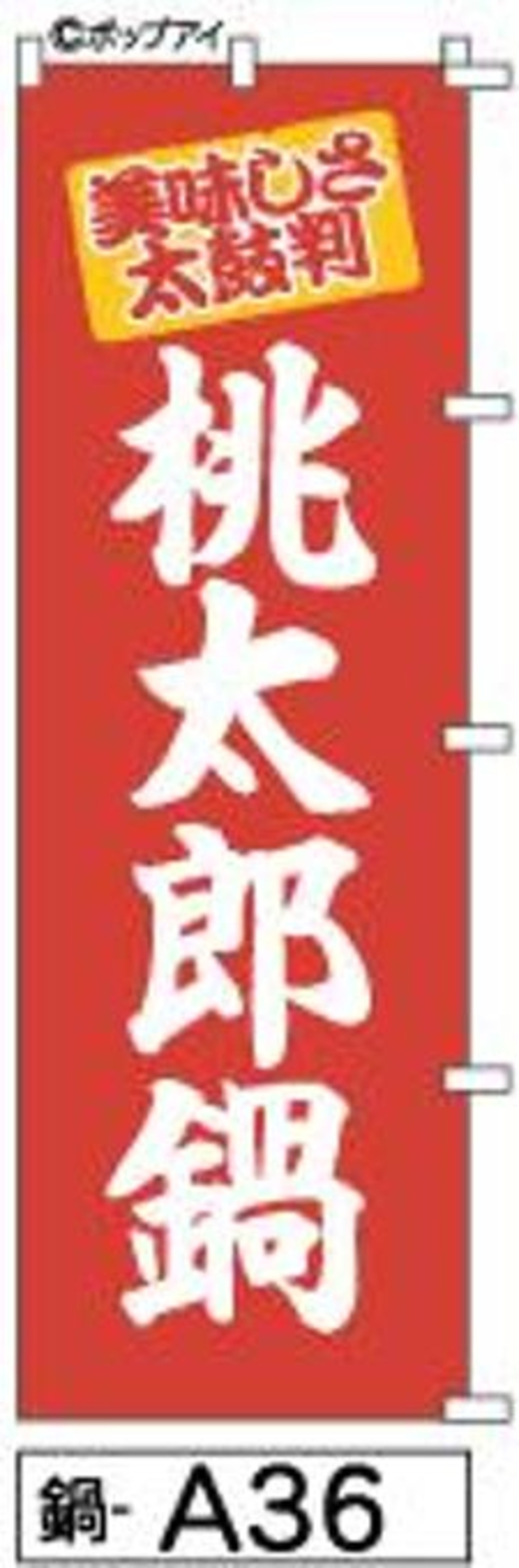 のぼり【桃太郎鍋】 は、特徴的な白抜き文字で筆で書かれた「桃太郎鍋」のタイトルが大きくデザインされています!店頭に掲示すると、自然に人々の目を引き、集客に大いに役立つこと間違いなしです。温かみのあるデザインは、店舗の雰囲気を一層引き立て、訪れるお客様に「桃太郎鍋」を楽しんでもらうきっかけを作ります。居酒屋やレストランのメニューを彩り、特別な料理をアピールする最適なアイテムです!