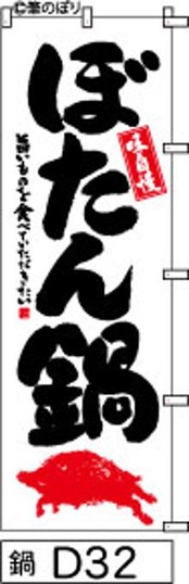【ぼたん鍋】のぼり旗|送料無料 目立つ手書き筆文字[d032]白地に黒