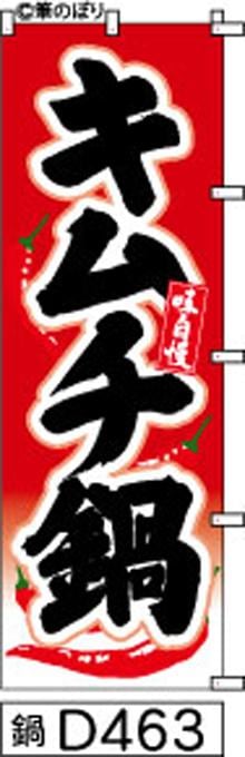「のぼり【キムチ鍋】赤に黒の手書き筆文字[鍋D463](商標登録番号6807113)」