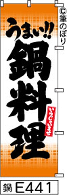 【鍋料理】のぼり旗|送料無料 目立つ手書き筆文字[e441]白地にオレンジ和模様黒