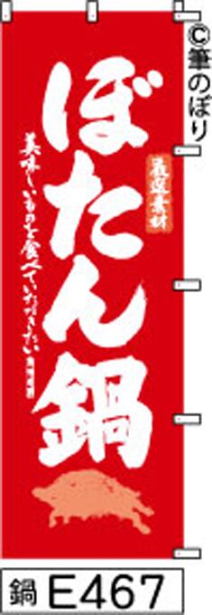 【ぼたん鍋】のぼり旗|送料無料 目立つ手書き筆文字[e467]赤に白