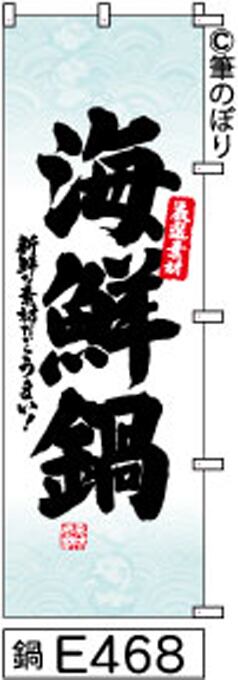 【海鮮鍋】のぼり旗|送料無料 目立つ手書き筆文字[e468]白地に薄青和模様黒