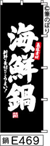 【海鮮鍋】のぼり旗|送料無料 目立つ手書き筆文字[e469]黒に白
