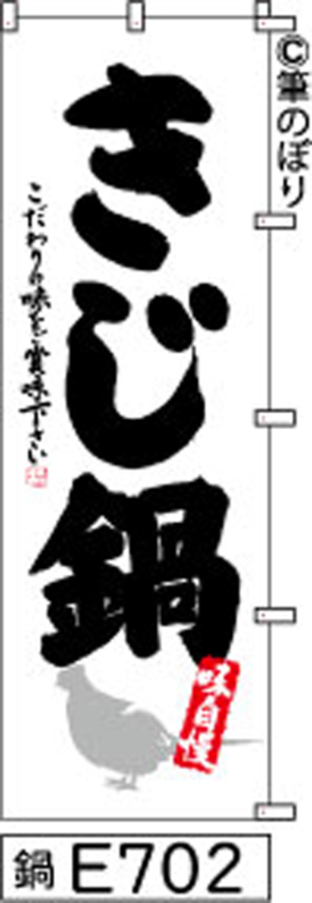 【きじ鍋】のぼり旗|送料無料 目立つ手書き筆文字[e702]白地に黒