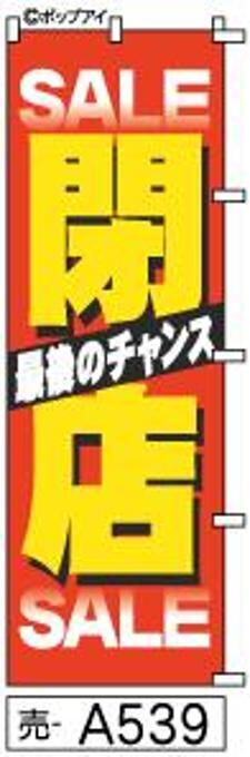 【閉店】のぼり旗|送料無料 目立つ手書き筆文字[a539]赤に黄色文字