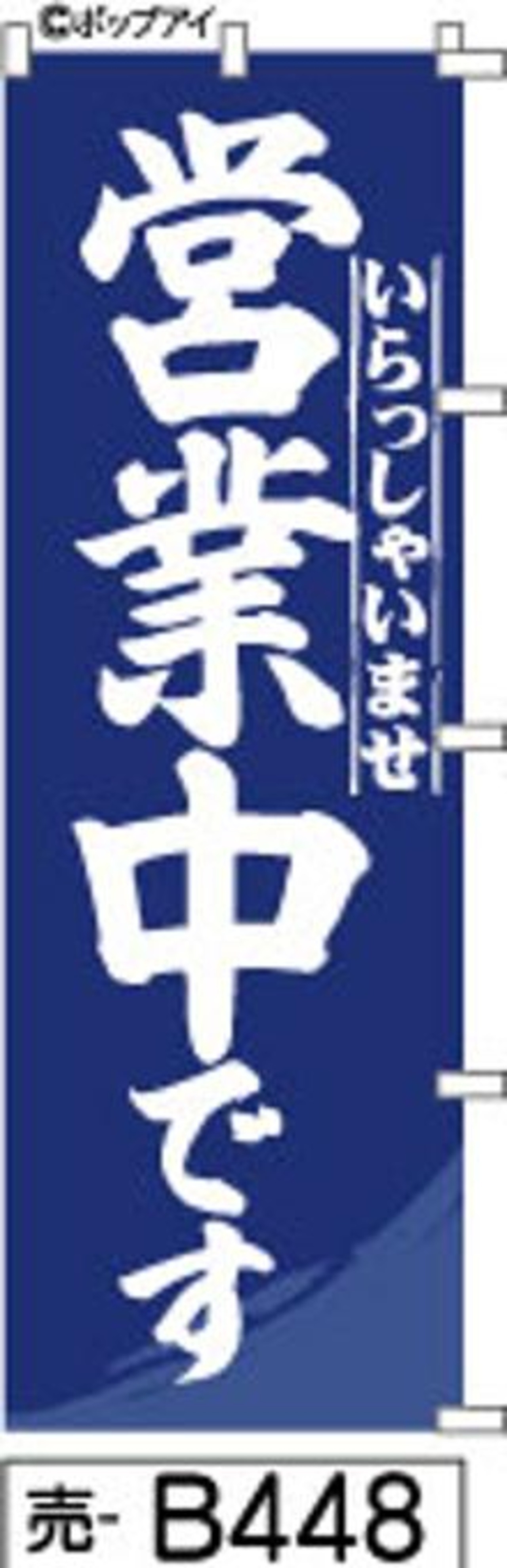 【営業中いらっしゃいませ】のぼり旗|送料無料 目立つ手書き筆文字[b448]紺に白抜き