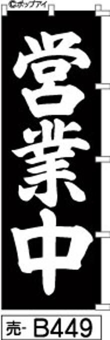 【営業中】のぼり旗|送料無料 目立つ手書き筆文字[b449]黒に白抜き