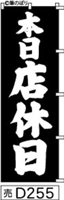 【店休日】のぼり旗|送料無料 目立つ手書き筆文字[d255]黒白抜き