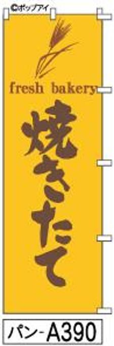 「のぼり【焼きたて】黄色に茶色の手書き筆文字[パンA390](商標登録番号6807113)『受注生産』」