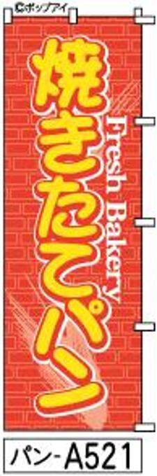 横幕【焼きたてパンの店】のぼり旗|送料無料 目立つ手書き筆文字[a521]黄色に黒フチ文字