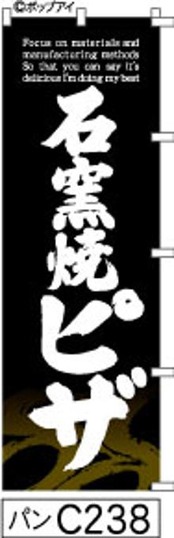 【石窯焼きピザ】のぼり旗|送料無料 目立つ手書き筆文字[c238]黒白抜き