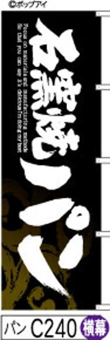 「横幕【石窯焼きパン】黒手書き筆文字[パンC240](商標登録番号6807113)『受注生産』」