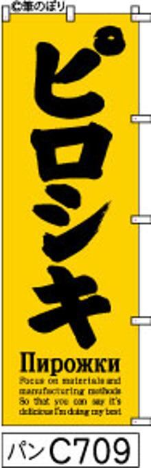 【ピロシキ】のぼり旗|送料無料 目立つ手書き筆文字[c709]黄色に黒