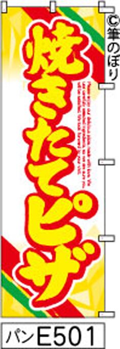 【焼きたてピザ】のぼり旗|送料無料 目立つ手書き筆文字[e501]白地に黄色柄黄色