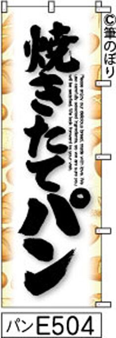 【焼きたてパン】のぼり旗|送料無料 目立つ手書き筆文字[e504]白地にパン柄黒