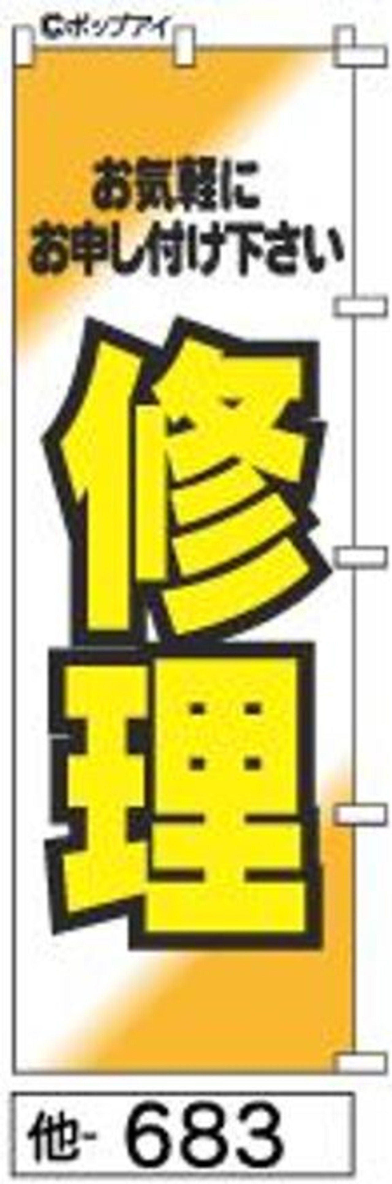 【修理】のぼり旗|送料無料 目立つ手書き筆文字[683]オレンジに黄色文字