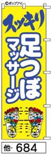 【足つぼマッサージスッキリ】のぼり旗|送料無料 目立つ手書き筆文字[684]黄色に白文字