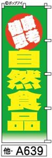 【自然食品】のぼり旗|送料無料 目立つ手書き筆文字[a639]緑に黄色文字