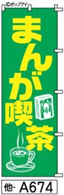 【まんが喫茶】のぼり旗|送料無料 目立つ手書き筆文字[a674]緑に黄色文字