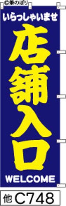 【店舗入口】のぼり旗|送料無料 目立つ手書き筆文字[c748]青に黄色