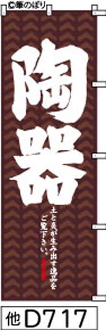 「のぼり【陶器】茶の陶器柄に白抜き手書き筆文字[他D717](商標登録番号6807113)」