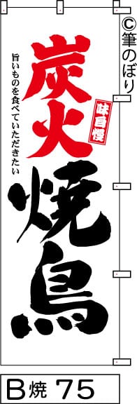 【送料無料】【炭火焼鳥】のぼり旗【キャンセル不可-12営業日以内に発送-ポスト投函】白地に赤と黒の手書き筆文字[075]