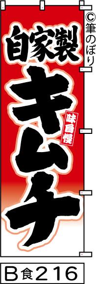 【送料無料】【自家製キムチ】のぼり旗【キャンセル不可-12営業日以内に発送-ポスト投函】赤に黒の目立つ手書き筆文字[216]