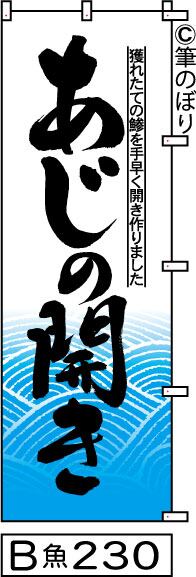 【送料無料】【あじの開き】のぼり旗【キャンセル不可-12営業日以内に発送-ポスト投函】白地に水色波柄黒の目立つ手書き筆文字[230]