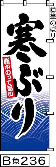 【送料無料】【寒ぶり】のぼり旗【キャンセル不可-12営業日以内に発送-ポスト投函】白地に青波柄黒の目立つ手書き筆文字[236]