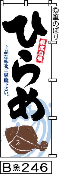 【送料無料】【ひらめ】のぼり旗【キャンセル不可-12営業日以内に発送-ポスト投函】白地に黒の目立つ手書き筆文字[246]