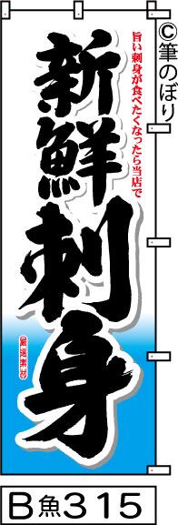 【送料無料】【新鮮刺身】のぼり旗【キャンセル不可-12営業日以内に発送-ポスト投函】白地に水色黒の目立つ手書き筆文字[315]