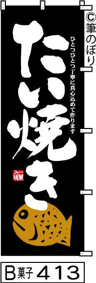 【送料無料】【たい焼き】のぼり旗【キャンセル不可-12営業日以内に発送-ポスト投函】黒に白の目立つ手書き筆文字[413]