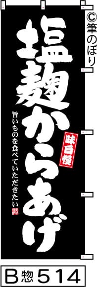 【送料無料】【塩麹からあげ】のぼり旗【キャンセル不可-12営業日以内に発送-ポスト投函】黒に白の目立つ手書き筆文字[514]