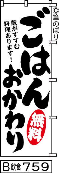 【送料無料】【ごはんおかわり無料】のぼり旗【キャンセル不可-12営業日以内に発送-ポスト投函】白に黒の目立つ手書き筆文字[759]