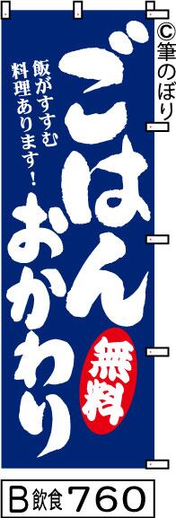 【送料無料】【ごはんおかわり無料】のぼり旗【キャンセル不可-12営業日以内に発送-ポスト投函】紺に白の目立つ手書き筆文字[760]