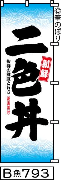【送料無料】【二色丼】のぼり旗【キャンセル不可-12営業日以内に発送-ポスト投函】白に水色波柄黒の目立つ手書き筆文字[793]
