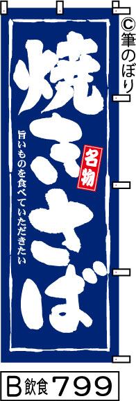 【送料無料】【焼きさば】のぼり旗【キャンセル不可-12営業日以内に発送-ポスト投函】紺に白の目立つ手書き筆文字[799]