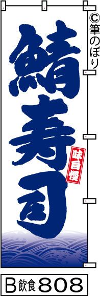 【送料無料】【鯖寿司】のぼり旗【キャンセル不可-12営業日以内に発送-ポスト投函】白に青波柄紺の目立つ手書き筆文字[808]