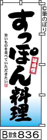 【送料無料】【すっぽん料理】のぼり旗【キャンセル不可-12営業日以内に発送-ポスト投函】白と水色に黒の目立つ手書き筆文字[836]