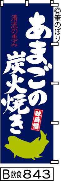 【送料無料】【あまごの炭火焼き】のぼり旗【キャンセル不可-12営業日以内に発送-ポスト投函】紺に白の目立つ手書き筆文字[843]