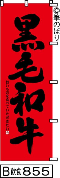 【送料無料】【黒毛和牛】のぼり旗【キャンセル不可-12営業日以内に発送-ポスト投函】赤に黒の目立つ手書き筆文字[855]