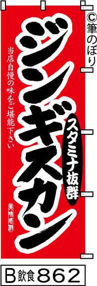 【送料無料】【ジンギスカン】のぼり旗【キャンセル不可-12営業日以内に発送-ポスト投函】赤に黒の目立つ手書き筆文字[862]