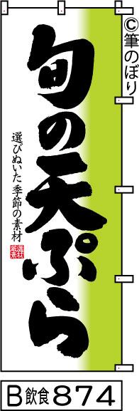 【送料無料】【旬の天ぷら】のぼり旗【キャンセル不可-12営業日以内に発送-ポスト投函】白と黄緑に黒の目立つ手書き筆文字[874]
